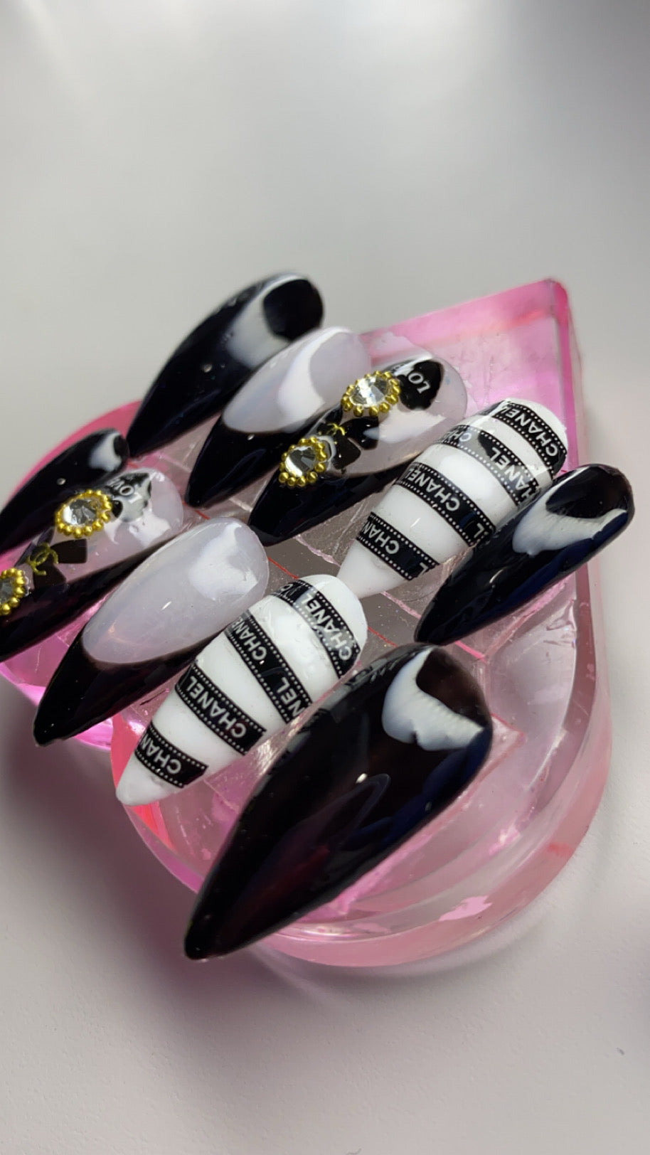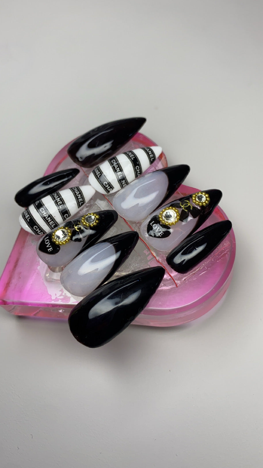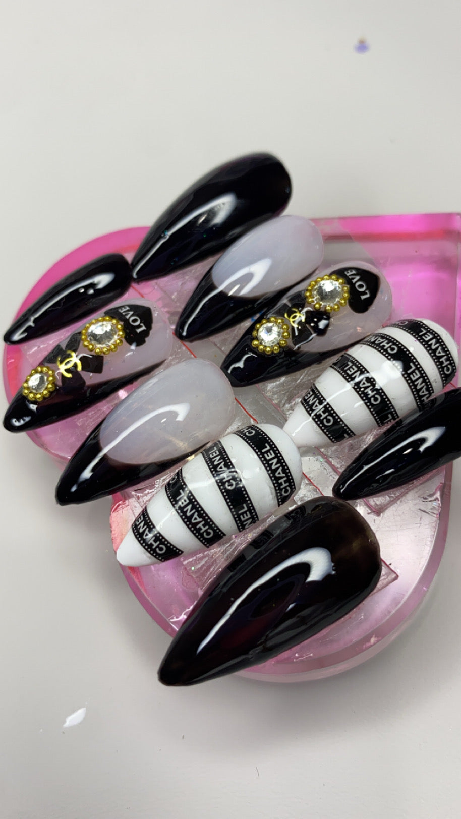 All nail sets are made with designer poly gel and hard gel products. For a professional salon look and 100% handcrafted.