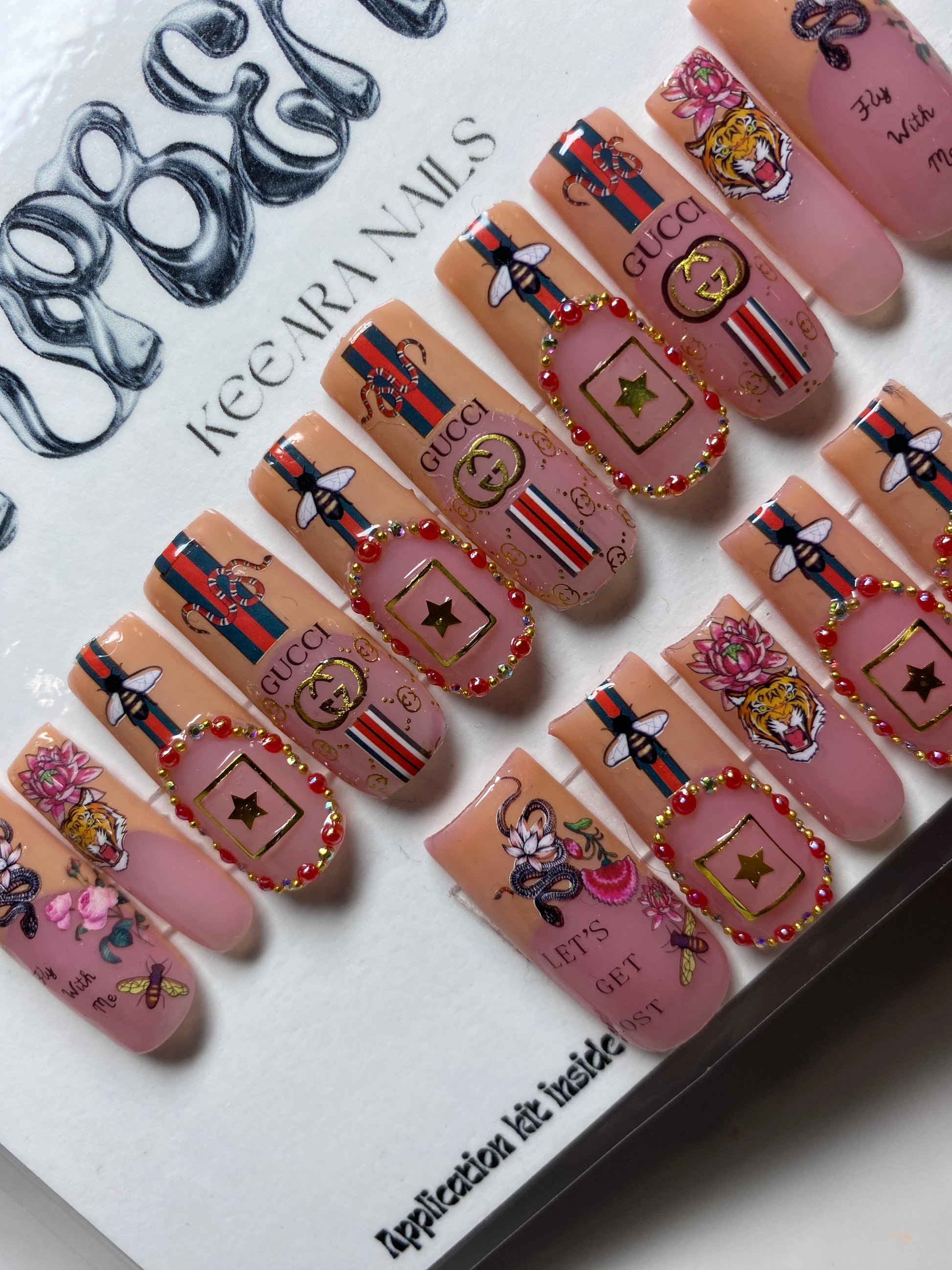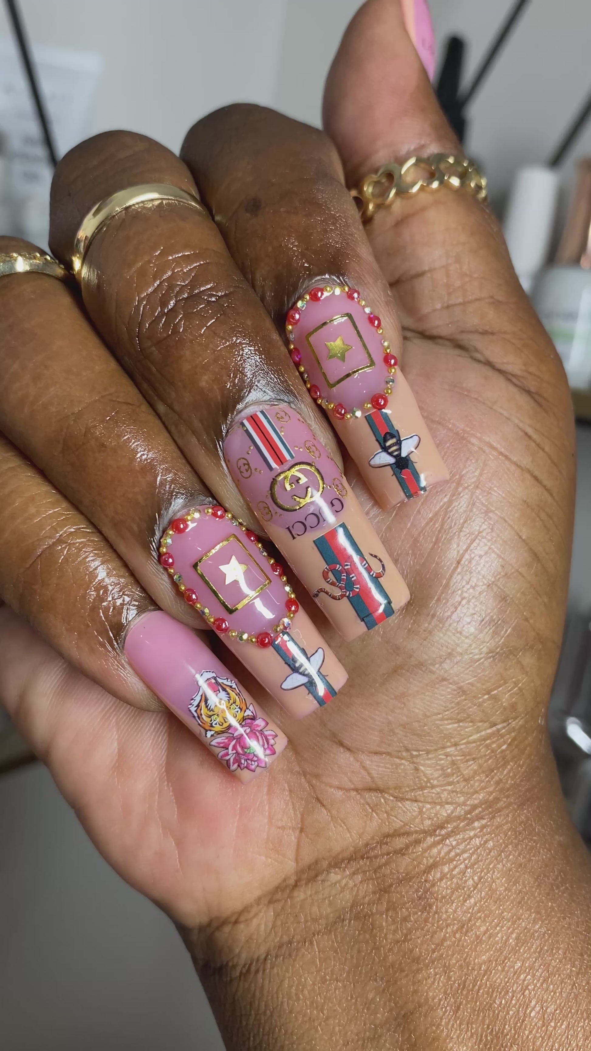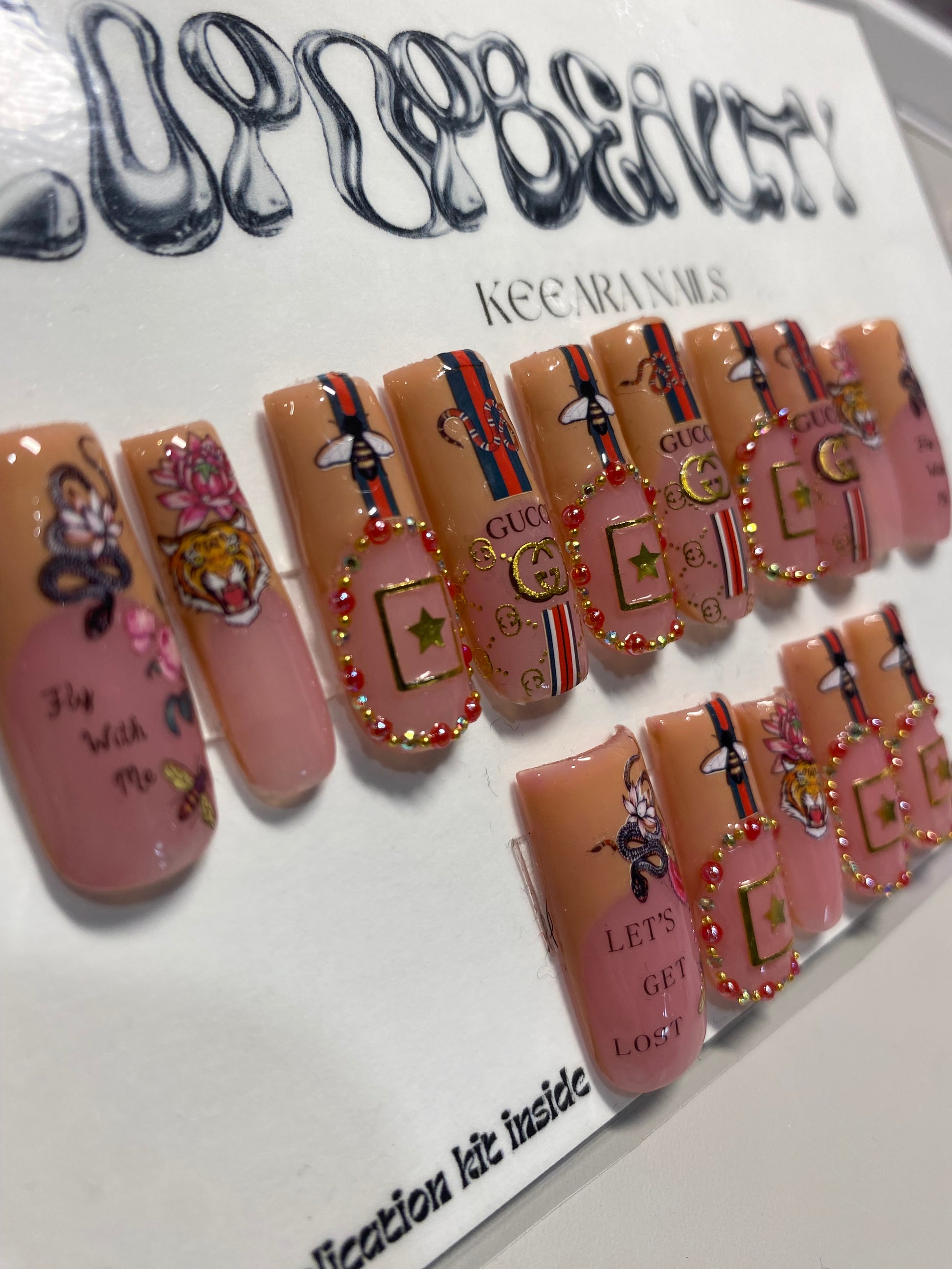 All nail sets are made with designer poly gel and hard gel products. For a professional salon look and 100% handcrafted.