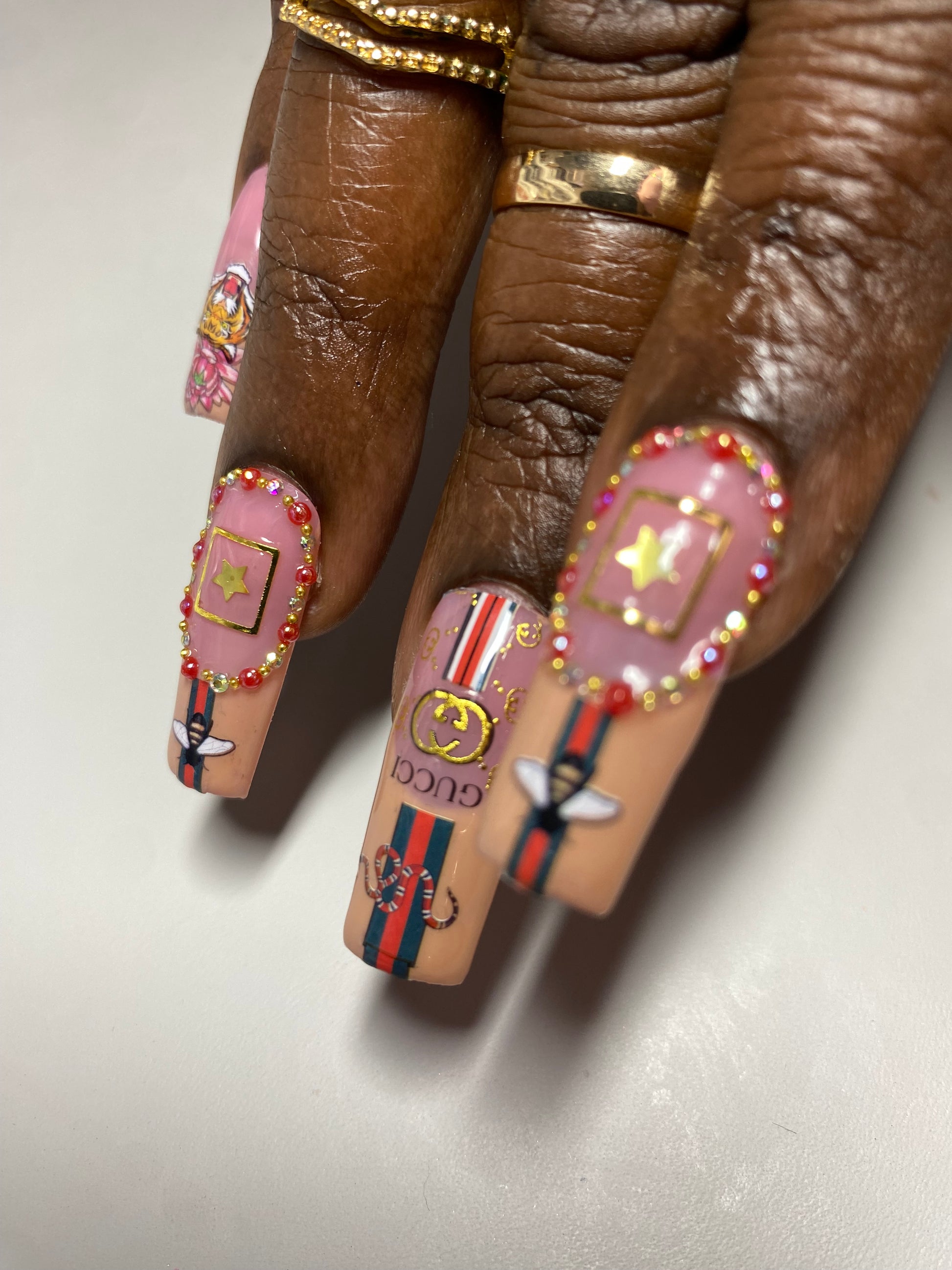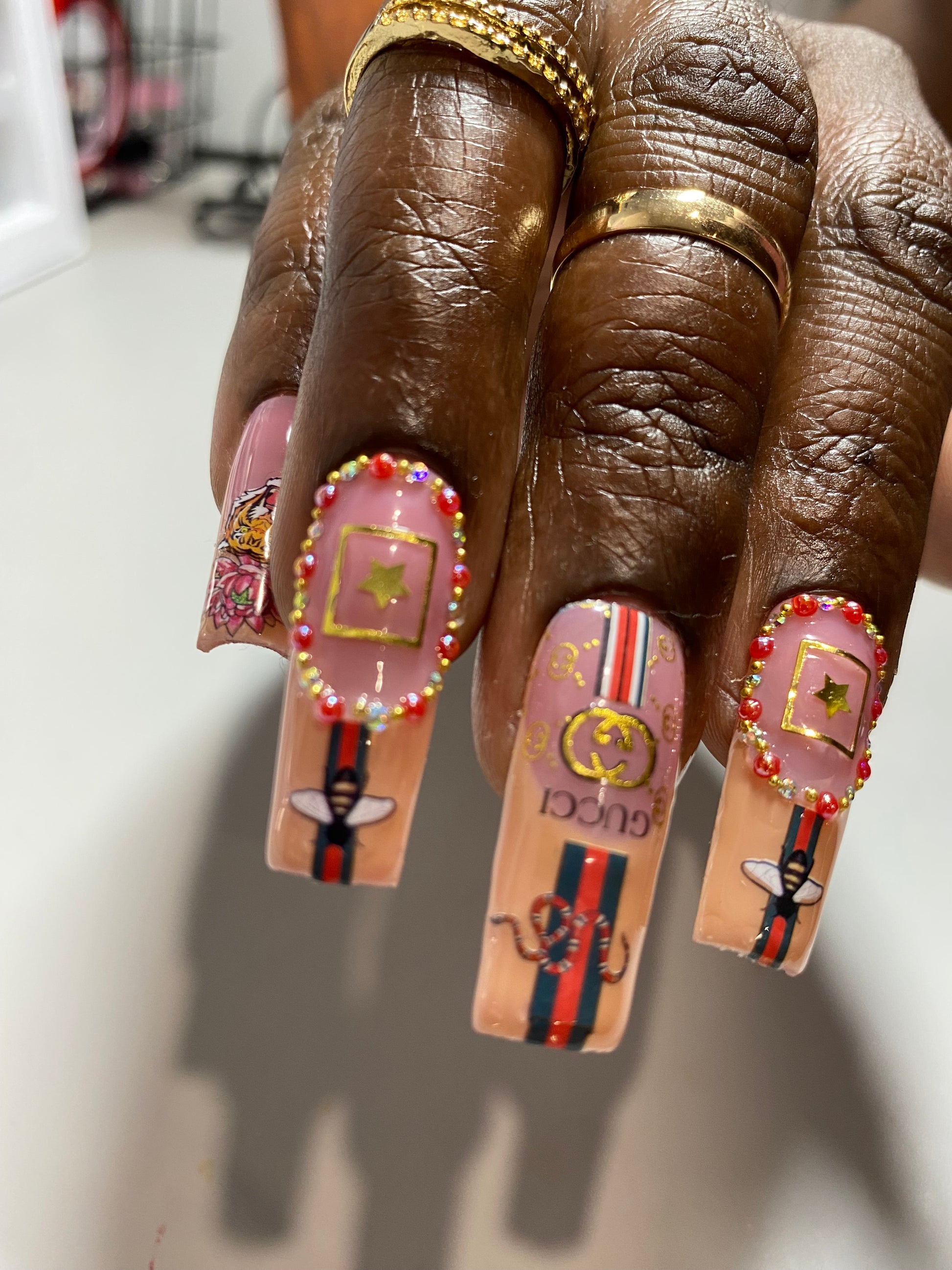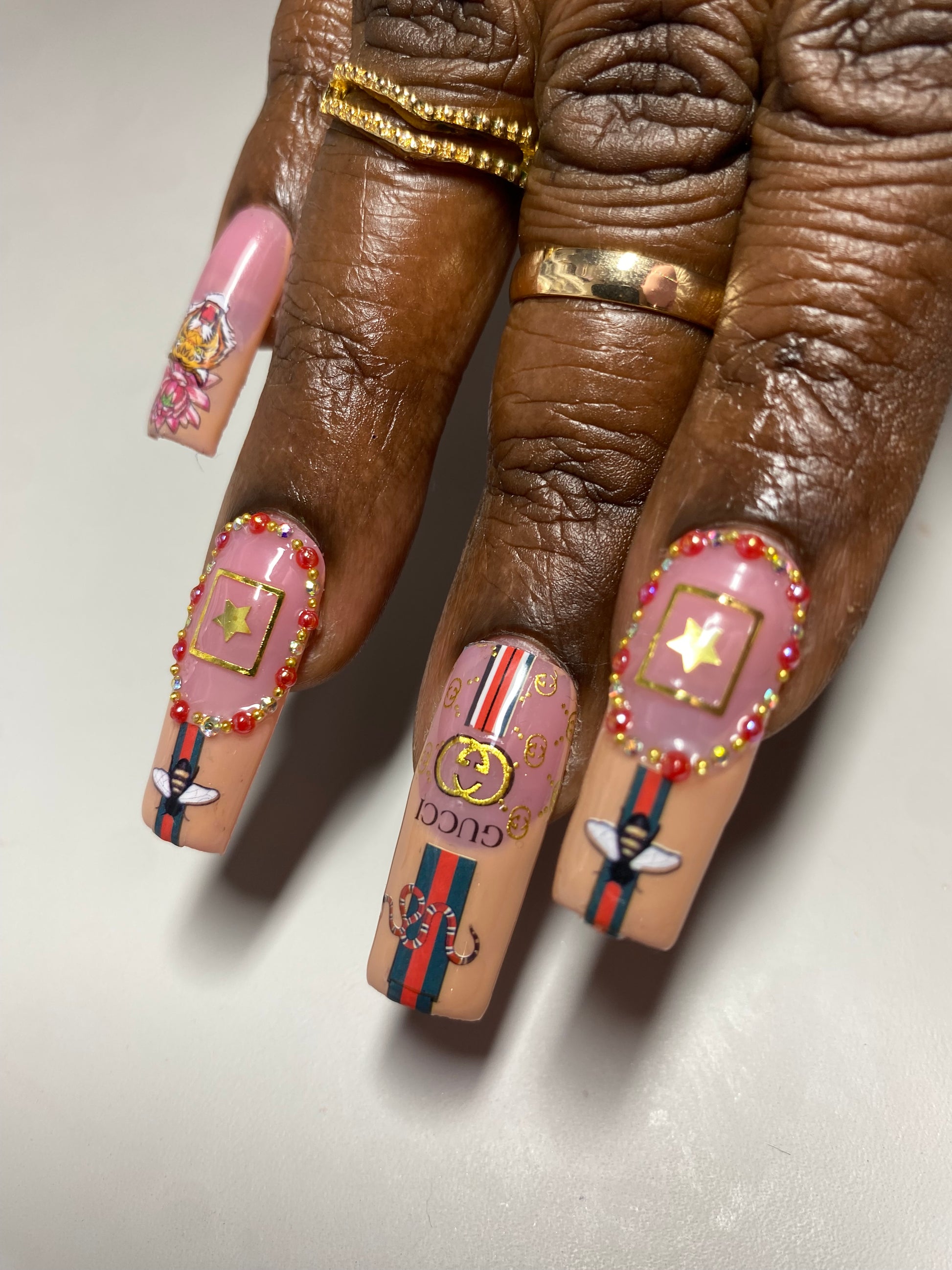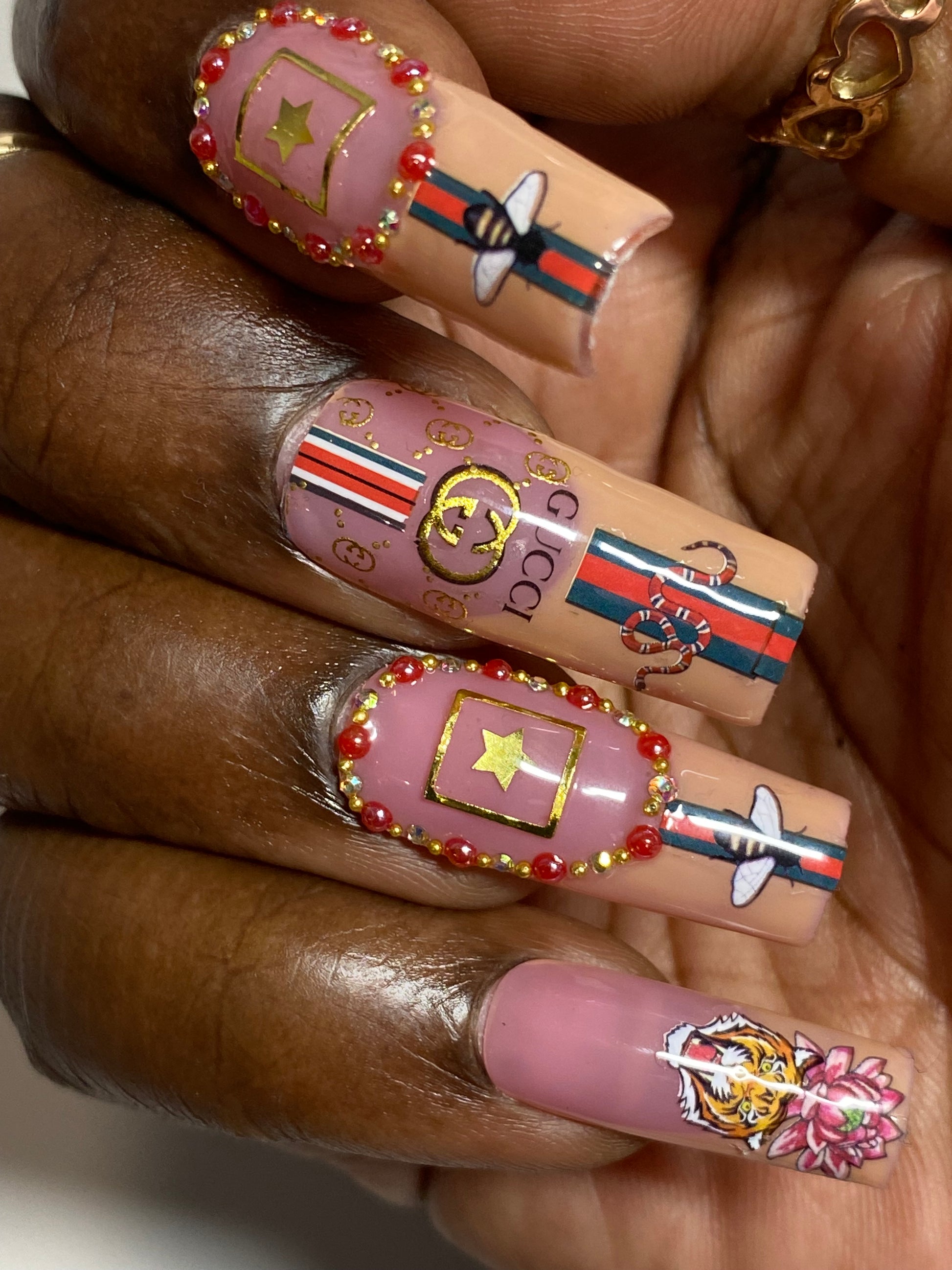 All nail sets are made with designer poly gel and hard gel products. For a professional salon look and 100% handcrafted.