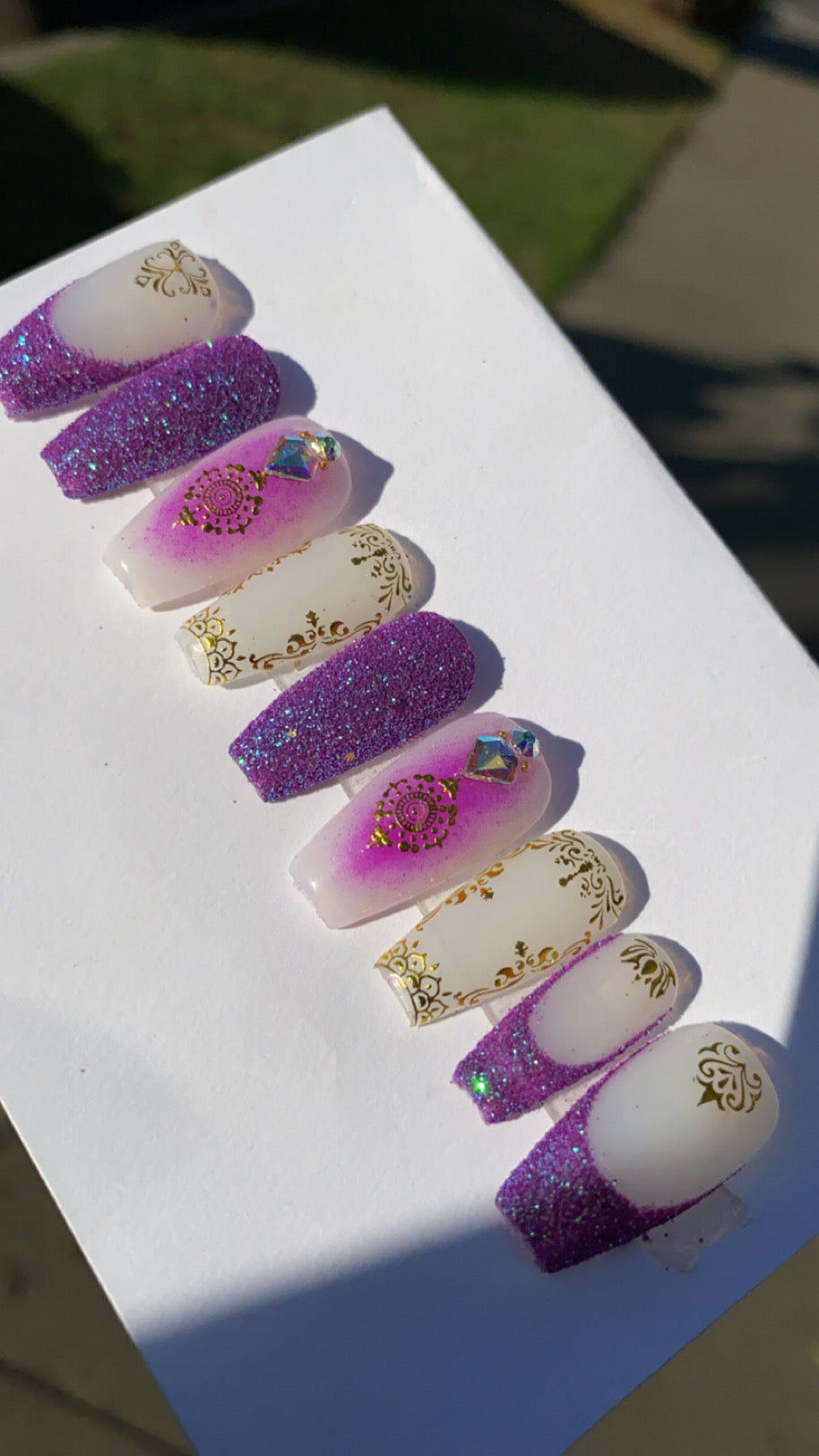 All nail sets are made with designer poly gel and hard gel products. For a professional salon look and 100% handcrafted.