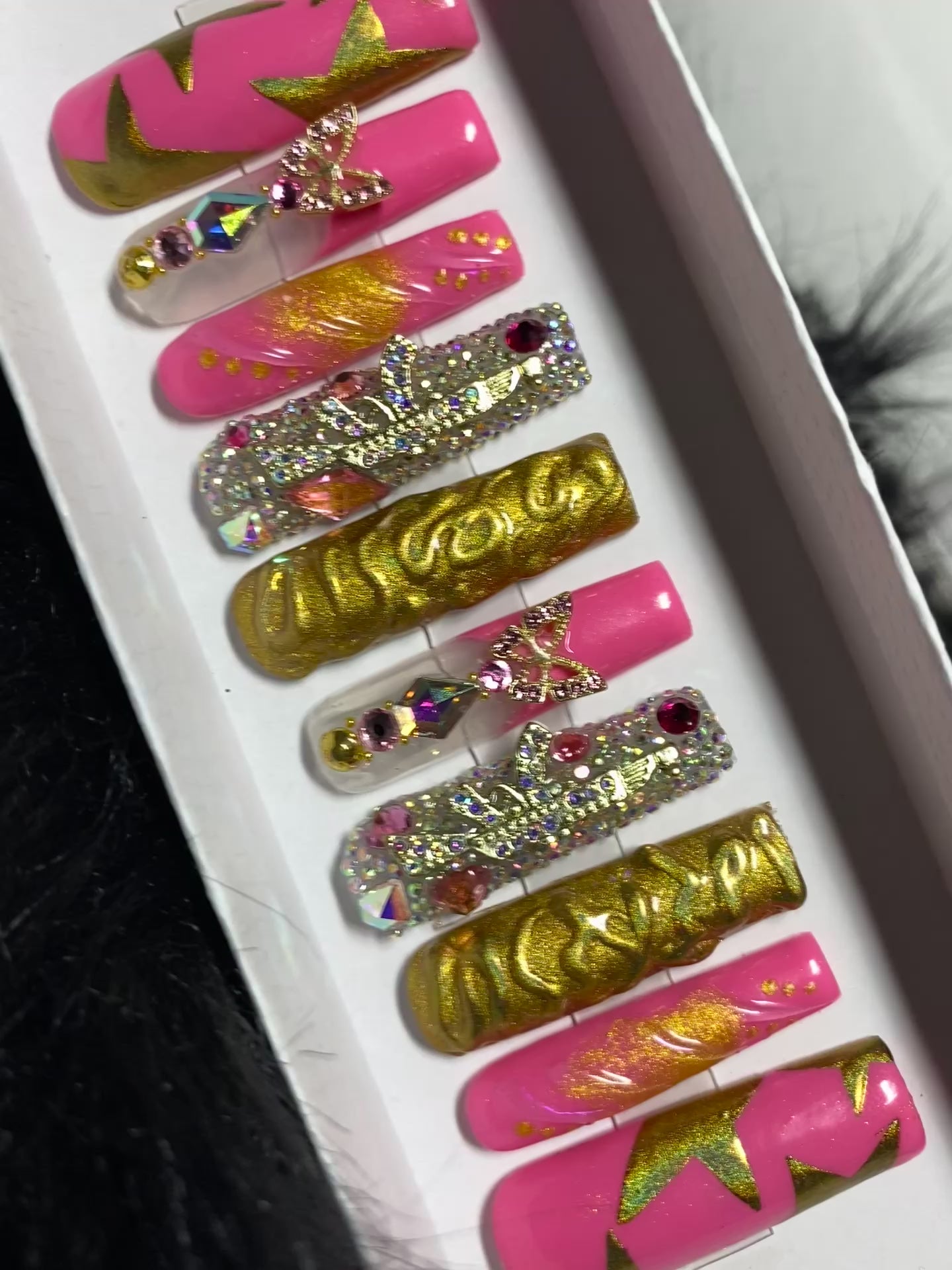 All nail sets are made with designer poly gel and hard gel products. For a professional salon look and 100% handcrafted.