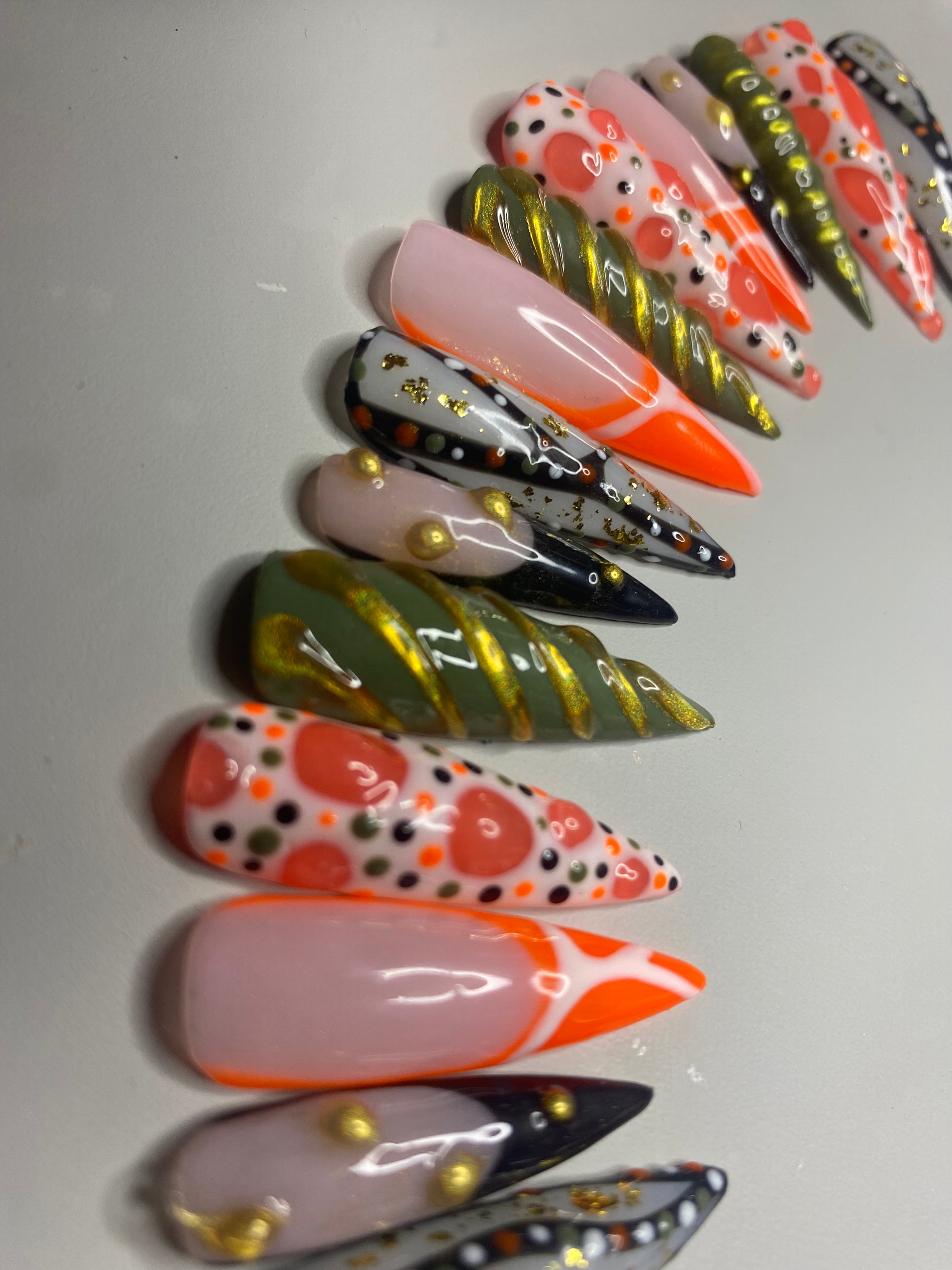 All nail sets are made with designer poly gel and hard gel products. For a professional salon look and 100% handcrafted.