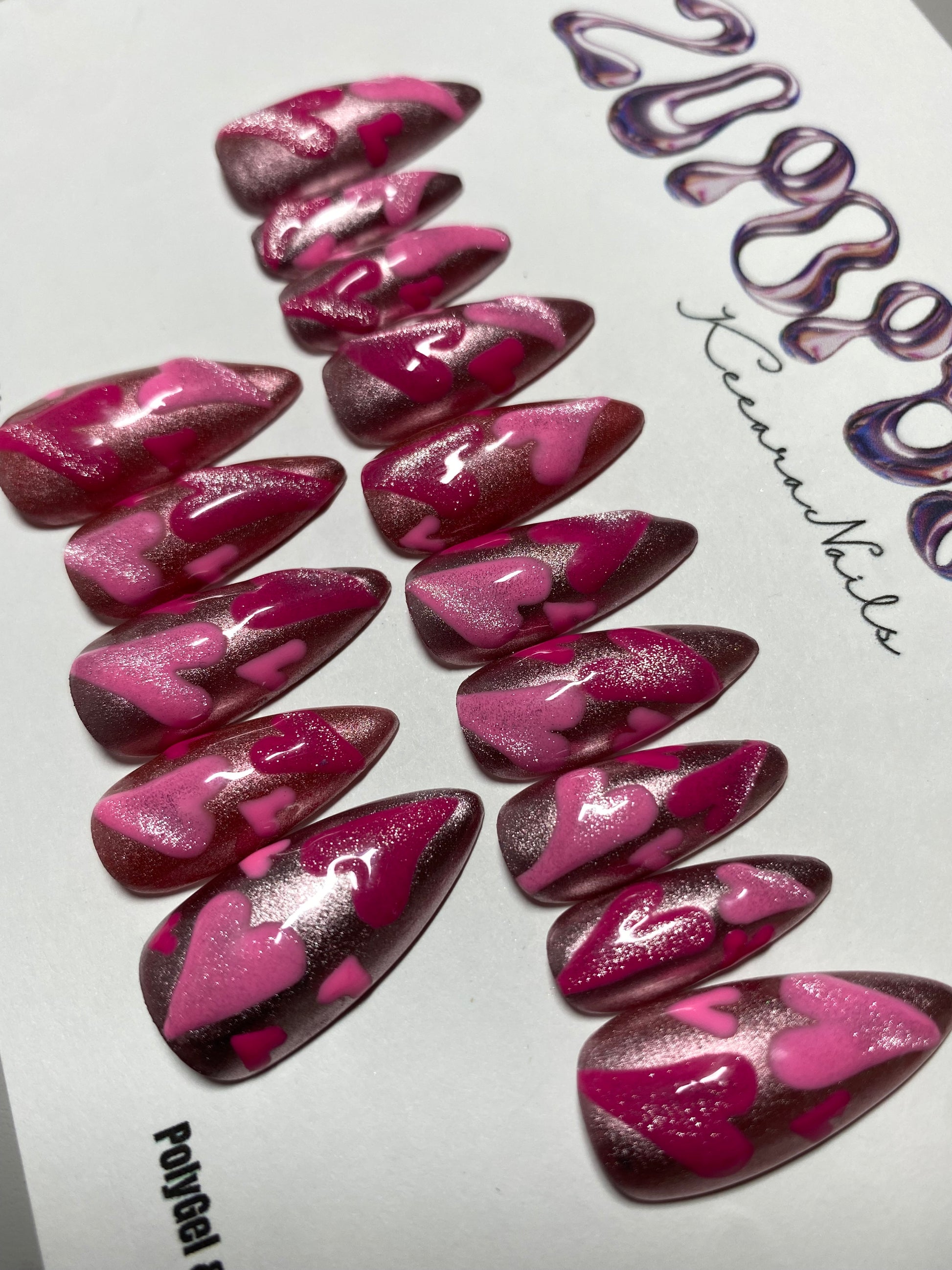 All nail sets are made with designer poly gel and hard gel products. For a professional salon look and 100% handcrafted.