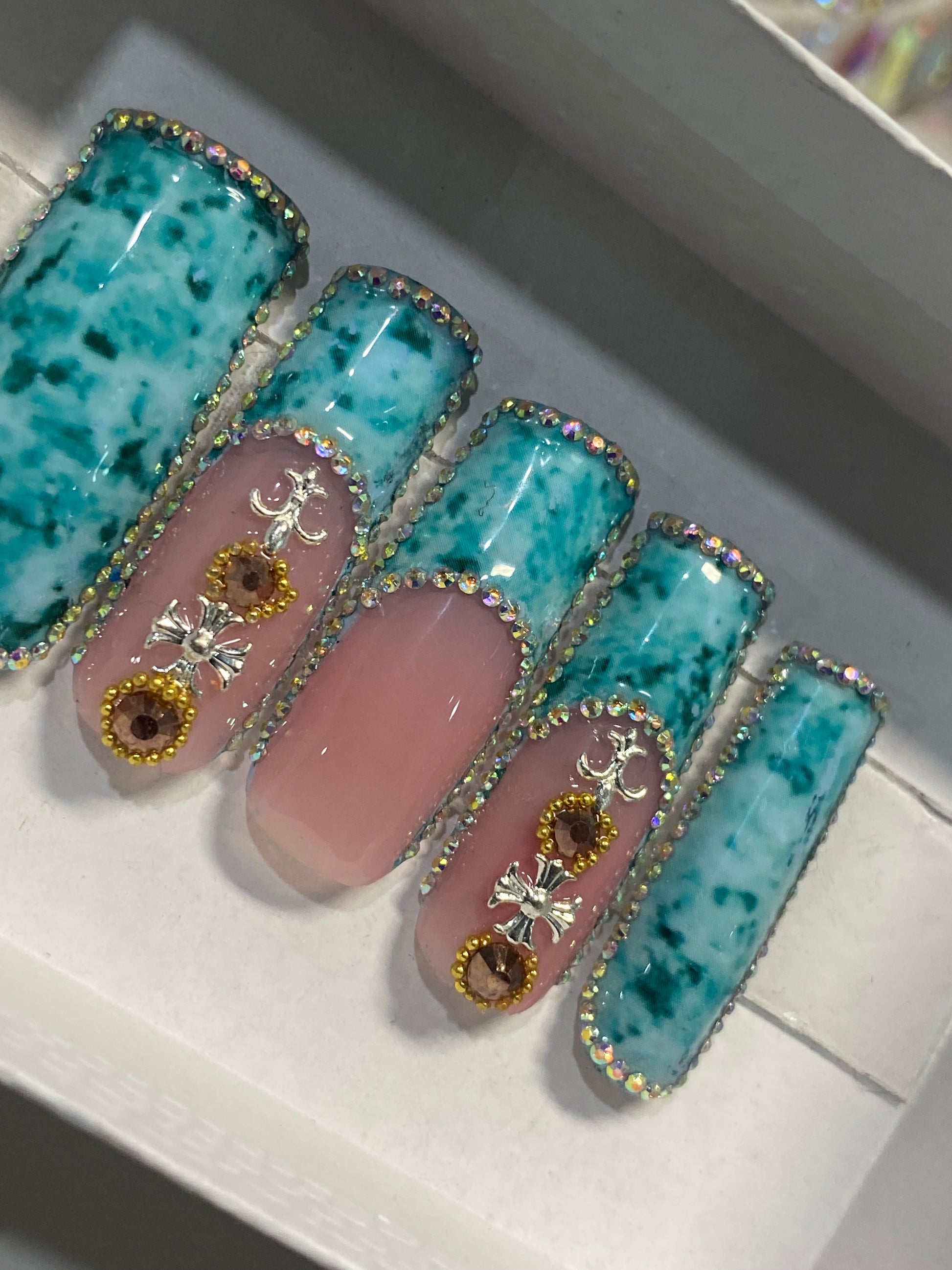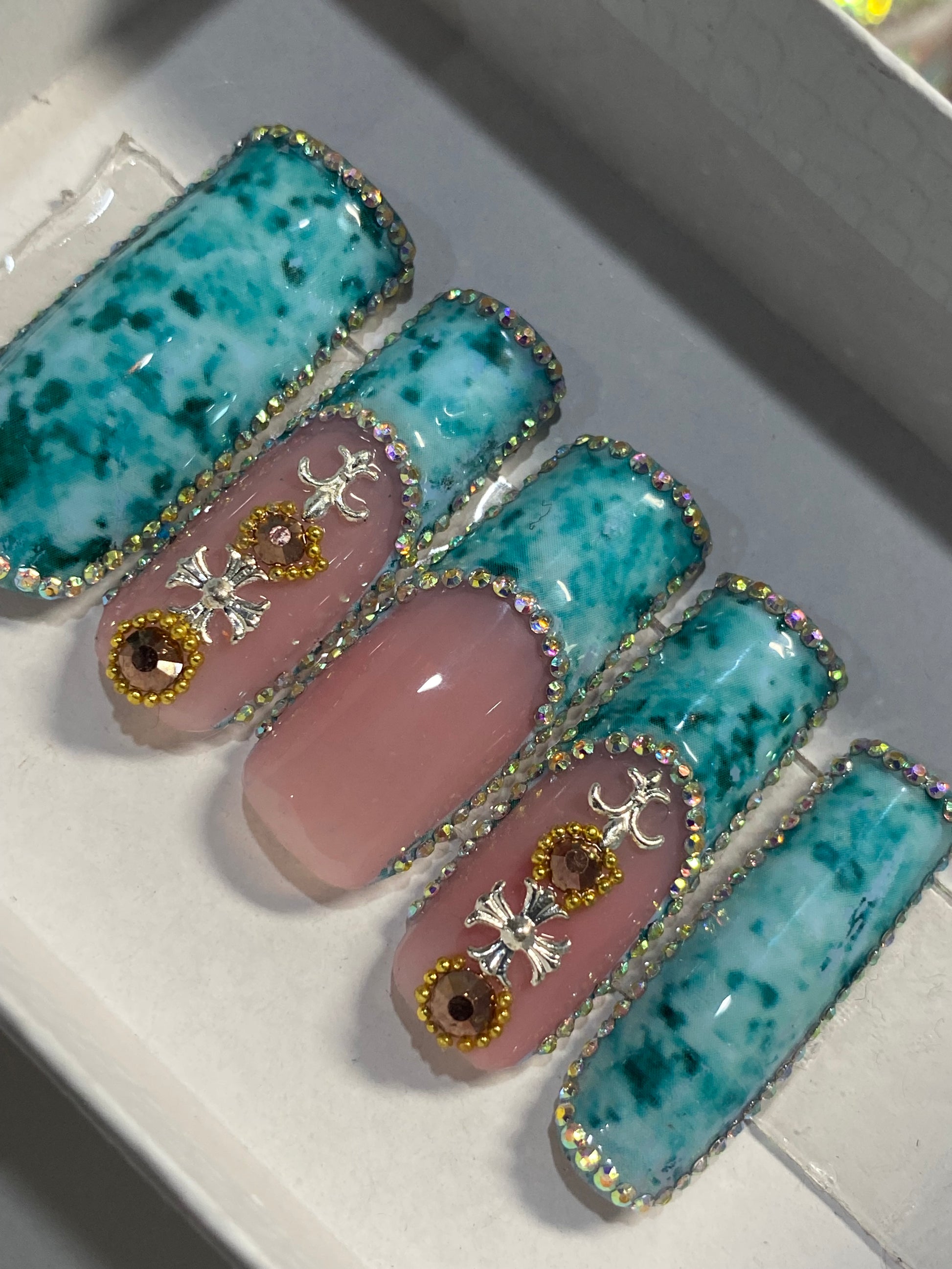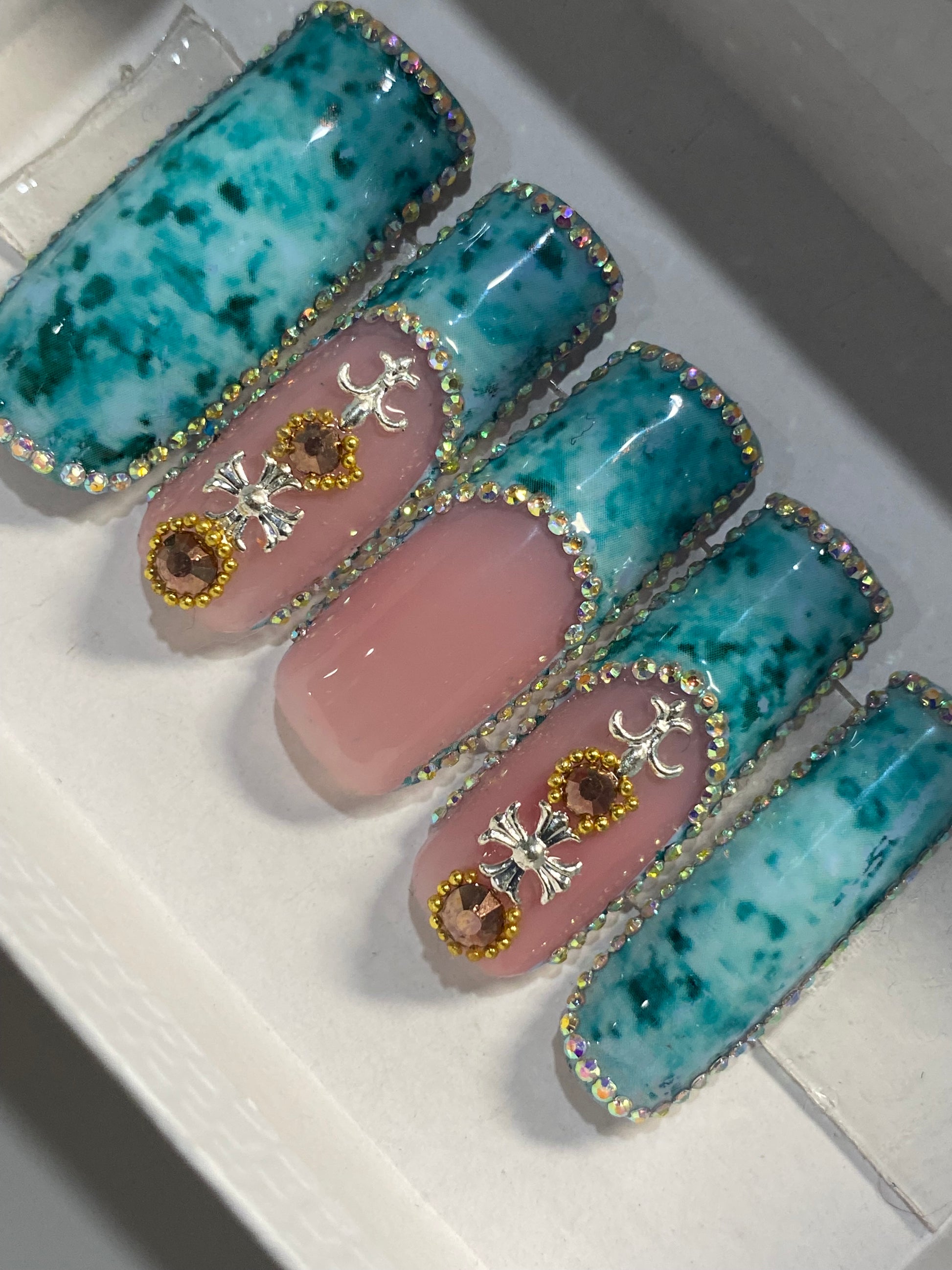 All nail sets are made with designer poly gel and hard gel products. For a professional salon look and 100% handcrafted.